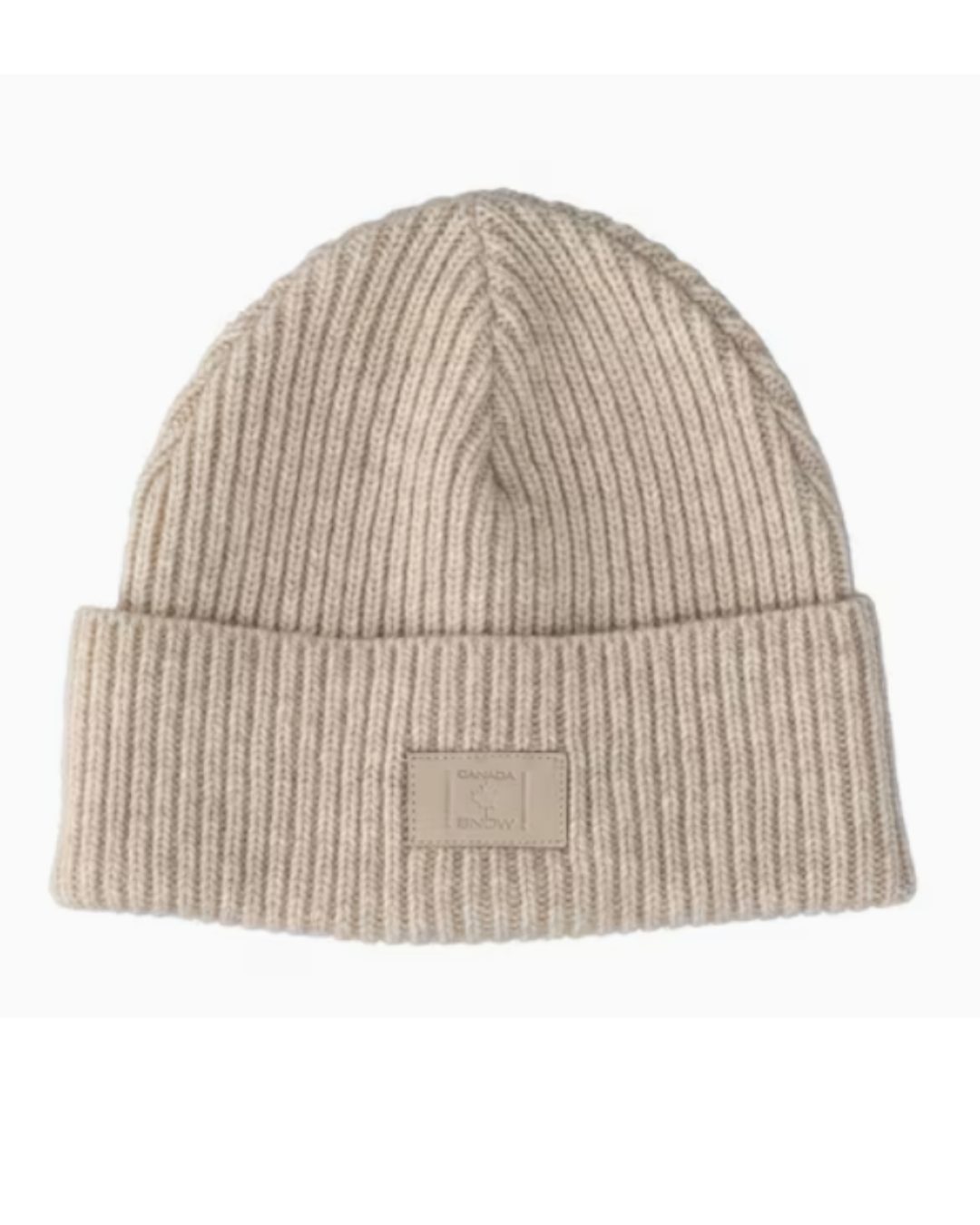 Akka, en mössa från Canada Snow. En beige mössa i lammull med en etikett i läder med Canada Snow-logotypen på framsidan. Canada Snows produkter är av högsta kvalitet och designade med största omsorg.