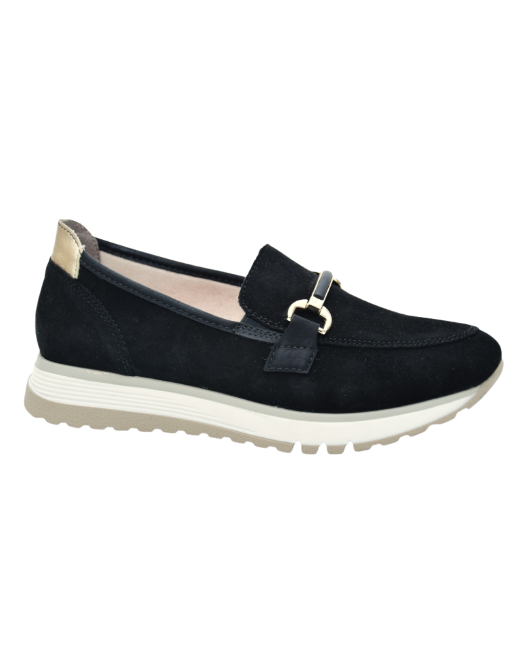 Denna eleganta loafer i mjuk mocka kombinerar stil och komfort på bästa sätt. Det dekorativa guldspännet ger skon ett sofistikerat uttryck som passar lika bra till vardag som mer uppklädda tillfällen.