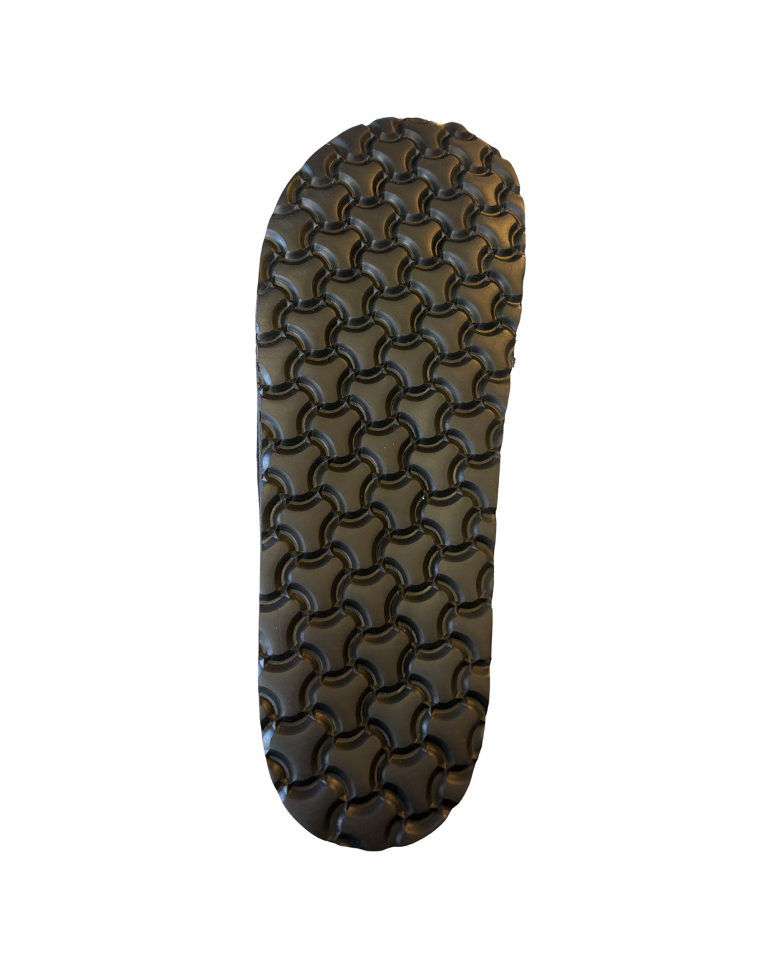 Fårskinnets naturliga egenskaper gör tofflan både temperaturreglerande och andningsbar, vilket bidrar till ett behagligt klimat för fötterna året runt. Insidan är helfodrad i mjuk ull som ger en lyxig känsla och extra komfort vid varje steg.