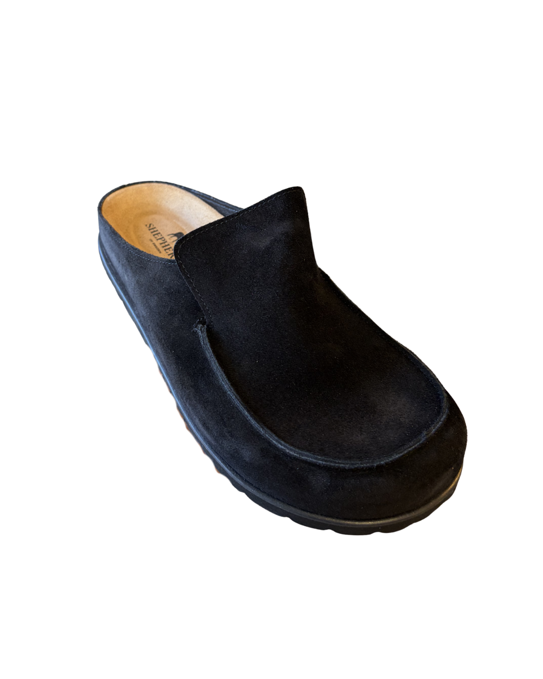 Shepherd Pedro toffla i svart är en klassisk och bekväm herrtoffel som ger maximal värme och komfort i hemmet. Tillverkad i mjukt och naturligt fårskinn omsluter den foten på ett behagligt sätt och håller dig varm även under kalla dagar.
