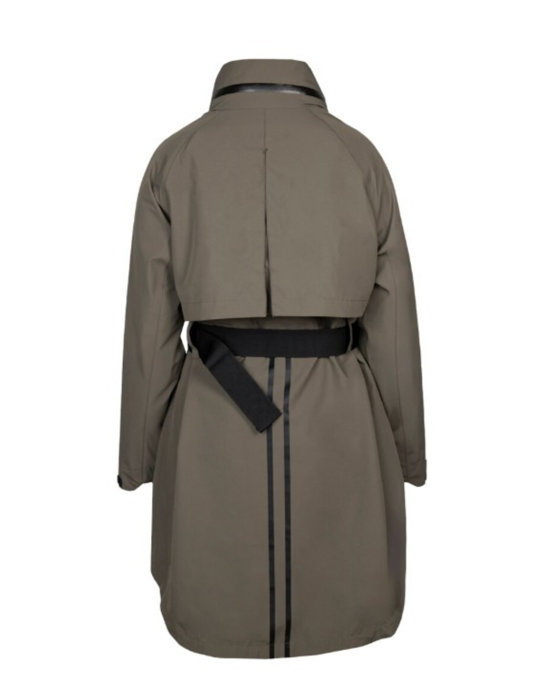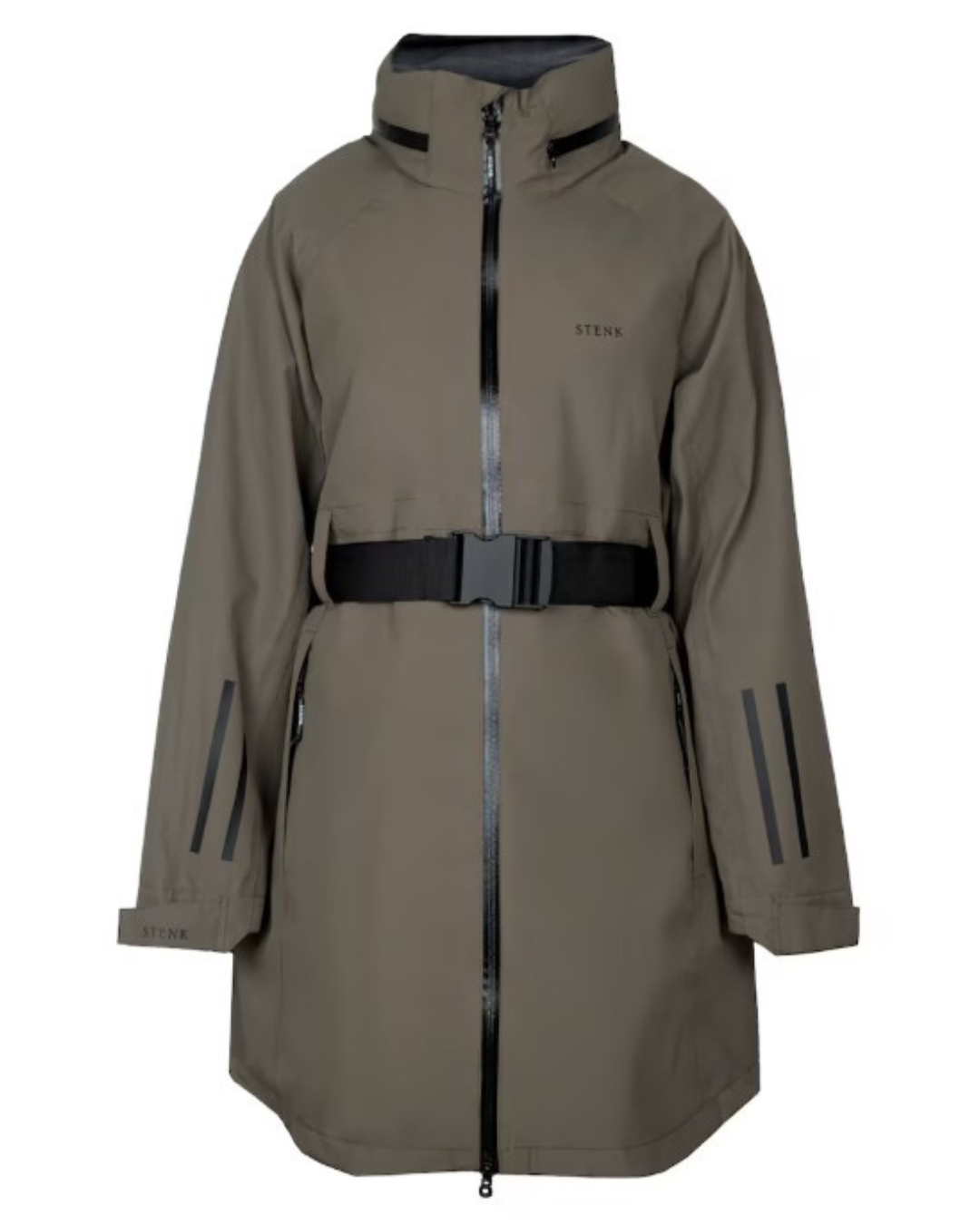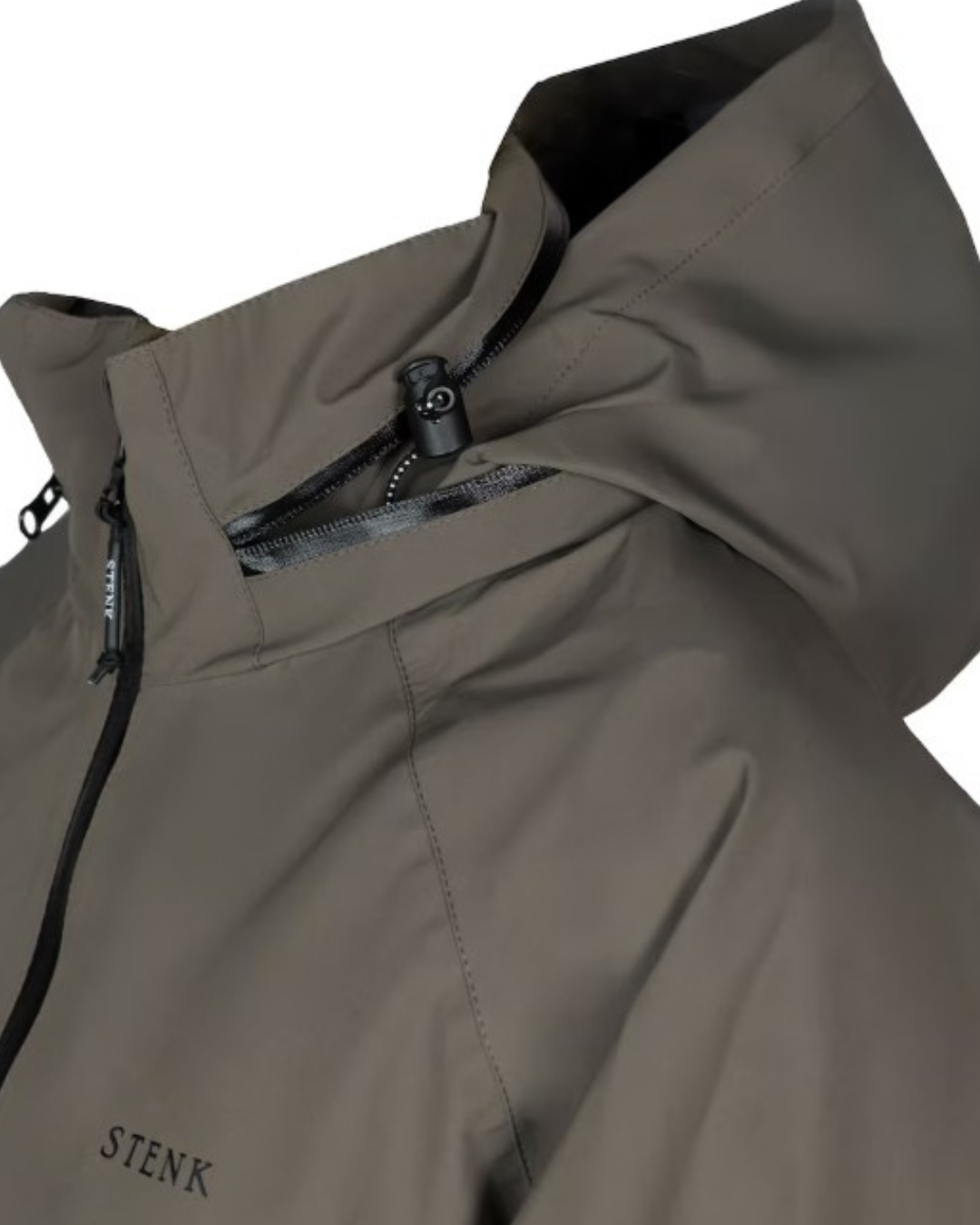 Hellvi från STENK – Khaki regnjacka i premium kvalitet, tillverkad i ett vattentät material som är andningsbar. Tejpade sömmar och funktionell design som skyddar mot både vind och vatten. Utrustad med vattentäta fickor med praktisk dragkedja och avtagbart nylon skärp i midjan. Huva som går att vika ihop i kragen. Vattenpelare: 10.000 mm.