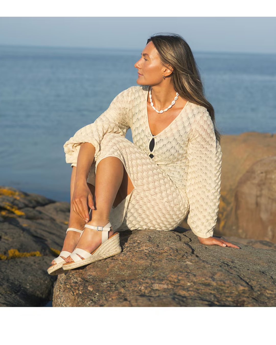 Sigrid från Sweeks är en modern och stilren sandalett som kombinerar somrig design med hög komfort. Den kilformade sulan är klädd i jute och ger ett naturligt och trendigt uttryck, perfekt för både vardag och festligare tillfällen.