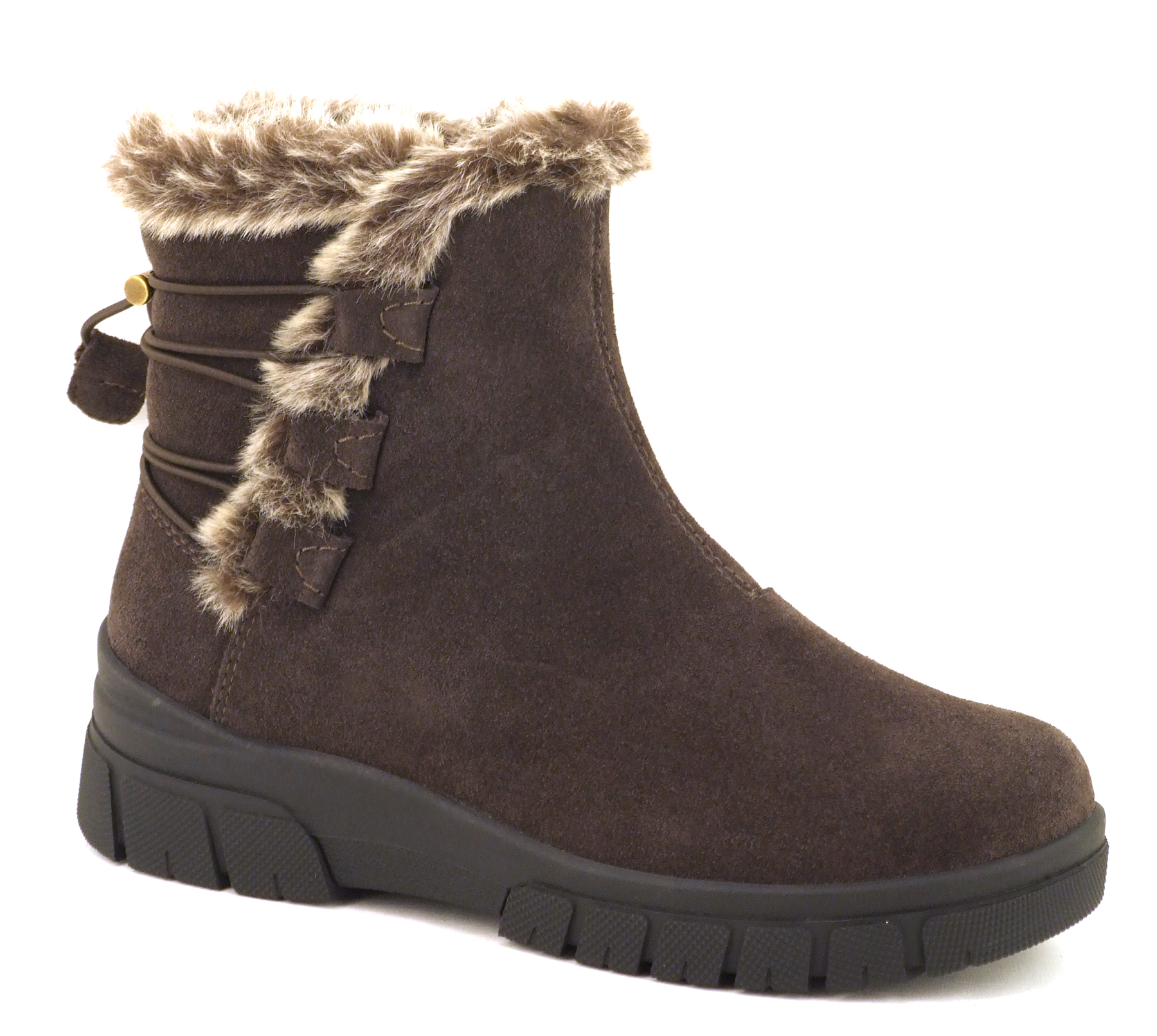 Upptäck våra stiliga kängor i mocka, designade för både komfort och trend. Med ett mjukt fuskpälsfoder håller de fötterna varma och ombonade. Den praktiska dragkedjan på insidan av skaftet och den elastiska snörningen med stopper bak gör dem lätta att ta på och av. Med en skafthöjd på cirka 13 cm erbjuder de perfekt stöd och stil. Perfekta för alla tillfällen!